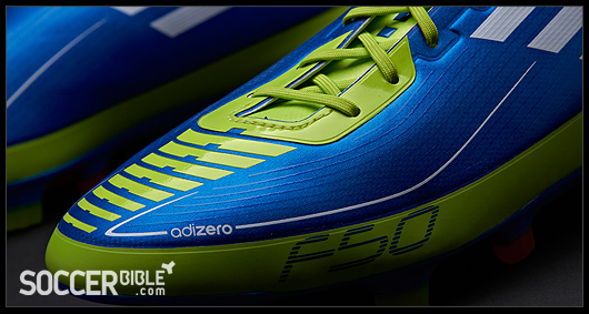 Unbelievably, the new Blue/White/Slime adizero Prime soccer shoes are the seventh colour-way released to the growing adizero range. As they're a colour addition, the technology remains the same, but it's worth reminding ourselves after the F50 adizero revolutionised the game and the boots market.