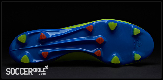The SprintFrame outsole is a revolutionary one-piece chassis; thin, flexible and lightweight, the SprintFrame is the main source of the adizero Prime's speed. Retaining the heel support and rigidity you need from a traditional boot, there is plenty of flex where needed, and a wider stud configuration increases traction and stability for movement. And as a nice touch, adidas have engineered grooves into the outsole to further reduce weight!
