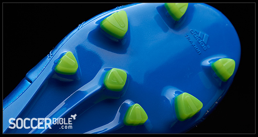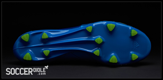 The FG plate features the triangular Traxion studs bespoke to the adizero range, placed at strategic positions across the sole unit that aids pressure distribution and are designed to give improved directional grip. The SG plate takes the form of a mixed sole version, which substitutes 6 removable aluminium studs at the toe and heel. Both sole plates offer stability through a sleeker midfoot area that also goes to creating a snug fit.