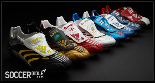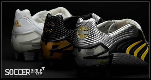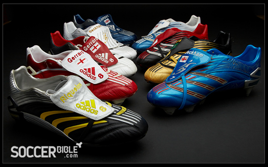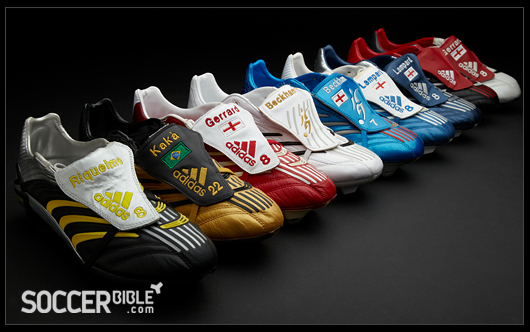 After some searching, we found that the black/yellow adiPower designed by Omar Gonzalez reminded us of these versions of the adidas Predator Absolute football boots. After sorting through the SoccerBible's collection, we then decided why show just one Predator Absolute when we've got a whole collection to showcase!