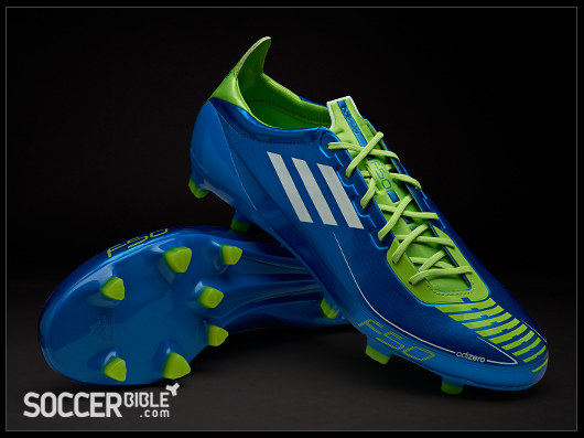 Never afraid to push the boundaries of football boot design, adidas have certainly conjured up some uniquely coloured boots! The new Blue/White/Slime adizero football boots are as bright as football boots come, but whether that makes them a more popular choice we'll have to see! Take a look and share your thoughts with the SoccerBible community online, on Twitter and on Facebook.