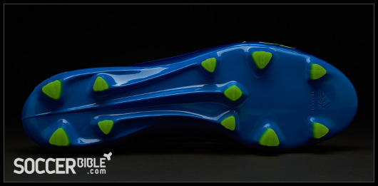 The FG plate features the triangular Traxion studs bespoke to the adizero range, placed at strategic positions across the sole unit that aids pressure distribution and are designed to give improved directional grip. The SG plate takes the form of a mixed sole version, which substitutes 6 removable aluminium studs at the toe and heel. Both sole plates offer stability through a sleeker midfoot area that also goes to creating a snug fit.
