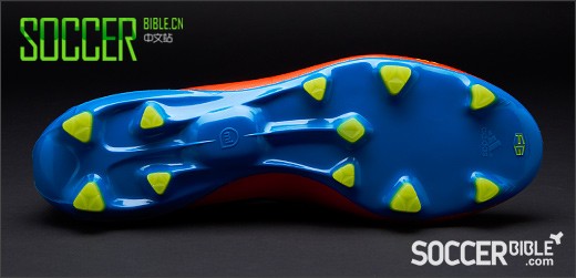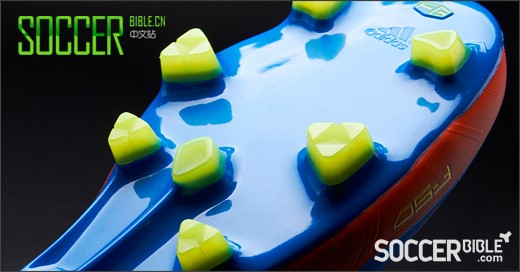 The construction of the adidas F50 adizero miCoach soccer shoes is built around three key features – Sprintskin, Sprintframe and the all new Sprintweb. The newly introduced Sprintweb – highlighted on these versions in the Energy colour, is an advancement on the TPU Bottom Frame from the previous adizero Prime. The Sprintweb offers increased lateral stability and support, especially across the midfoot, to transfer the forces from the outsole to the upper.