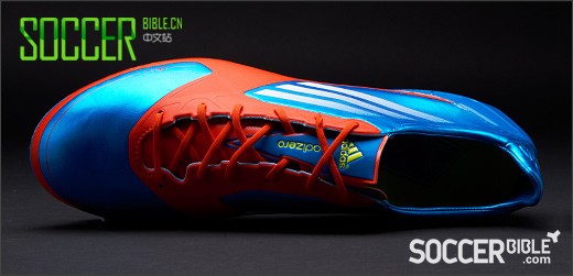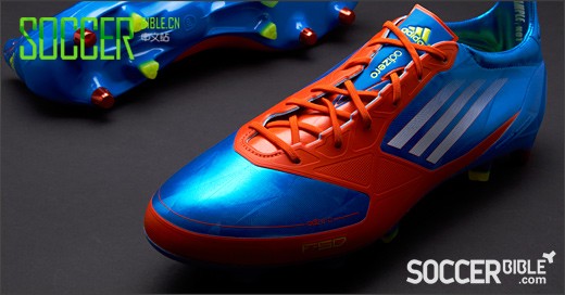 While the original High Energy/White/Electricity launch colourway of the f50 miCoach received mixed reviews, the new Blue/White/Energy boots may be met with a better response after the success of last years Blue/White/Slime adizero - the boot still being worn by Karim Benzema. Blue colourways have been big hits in the f50 range, dating way back to the original Cyan/White/Pink adizero.