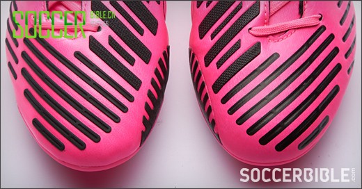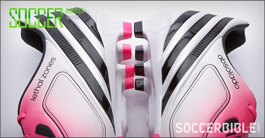 The Predator LZ uses a silicon rubber material for each of the five Lethal Zones, providing enhanced ball touch across the shoe. But for the Absolado LZ, while the Drive and Sweetspot zones do offer a similar raised platform for ball contact, the Dribble and First Touch zones are an embossed print application.