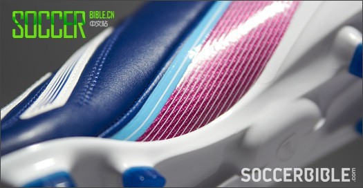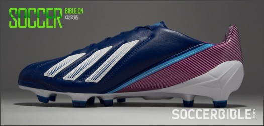 Dropping just in time for the Champions League, and making a play on the colour scheme of the Finale 13 ball, are these new F50 adizero football boots. The Blue/White/Pink combination gives a more classy toned down overall look, but one that emphasizes the Three Stripes.