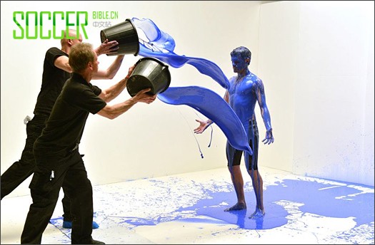 Captain John Terry, David Luiz and Eden Hazard were joined by adidas team-mates Juan Mata, Demba Ba, Oscar, Fernando Torres, Gary Cahill and Petr Cech. The Chelsea players were happy to participate, each agreeing to be photographed and filmed for the unique shoot, where they were covered with blue fluid while posing to camera.