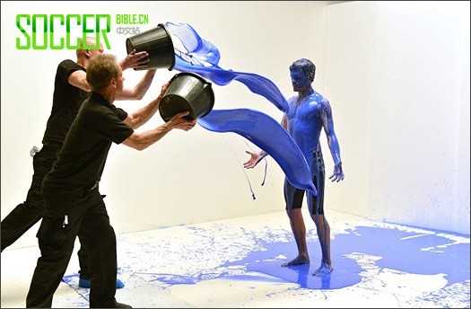 Captain John Terry, David Luiz and Eden Hazard were joined by adidas team-mates Juan Mata, Demba Ba, Oscar, Fernando Torres, Gary Cahill and Petr Cech. The Chelsea players were happy to participate, each agreeing to be photographed and filmed for the unique shoot, where they were covered with blue fluid while posing to camera.