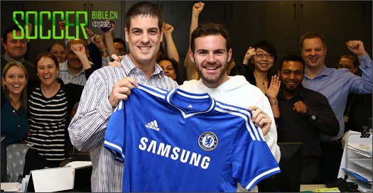 Prior to the full reveal of the new 2013/14 Chelsea home kit, adidas asked fans to pre-order the new jersey without seeing it. For one lucky fan, it wasn't a case of waiting for the shirt to arrive at his front door. Chelsea maestro Juan Mata took delivery duties upon himself, surprising everyone - besides the oblivious receptionist - at a London office to hand over the shirt.