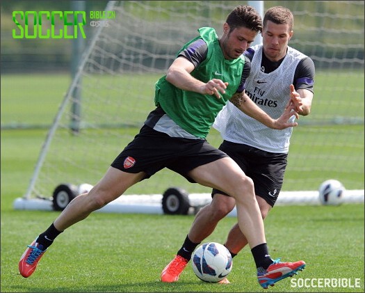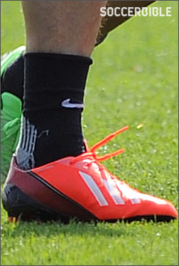 Podolski was spotted at Arsenal's London Colney training centre wearing the upcoming infrared/white/black f50 adizero, scheduled to launch in line with the Champions League final this May. Another dazzling addition to the f50 range, the striking new boots are also expected to feature in the final games of the European calender.
