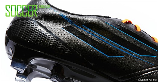 The black/blue F50 is wrapped in soft Taurus leather on the front of the boot to offer a more natural ball feel. The SPEEDFOIL on the back of the synthetic editions is replaced by a lightweight, perforated synthetic leather to finish off a more heritage-esque design.
