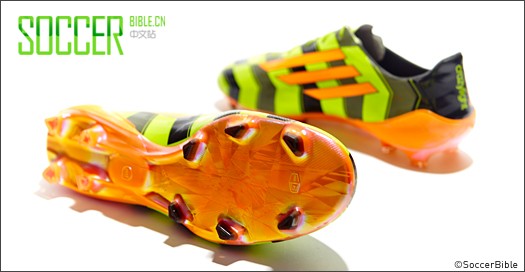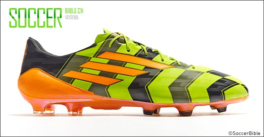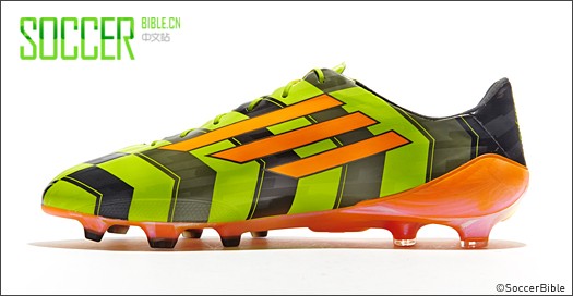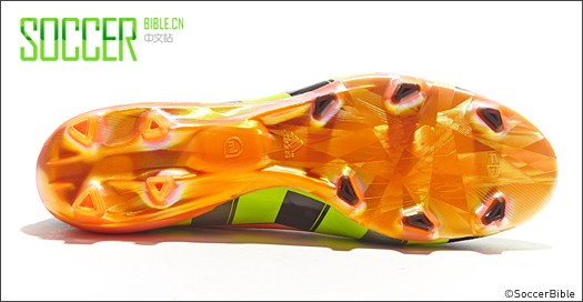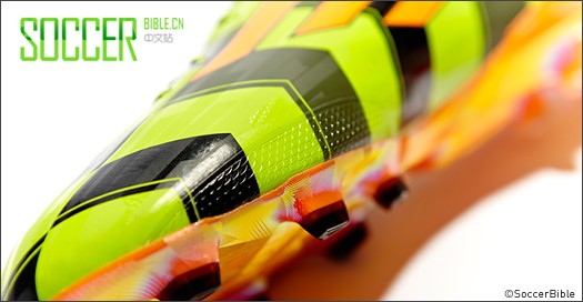 The adidas Innovation Team has developed a totally new, innovative next-generation lightweight skin which drastically reduces the weight on the upper part of the boot, while still guaranteeing high quality and performance. The sleek black and green coloured arrow design showcases the perception of forward motion, finished off with bright orange adidas three-stripes.