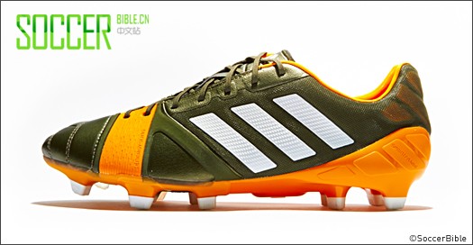 adidas' newest silo, the Nitrocharge, gets a distinctly 'Earthy' paint job in the form of an Earth Green/Running White/Solar Zest colourway. The rainforest inspired green upper is joined by the Nitrocharge's 'Energy Sling' seen for the first time in orange. Designed for the midfield engine of the team, the Nitrocharge technology provides a high energy return when pushing off and sprinting.