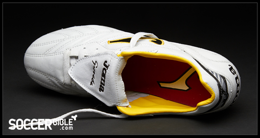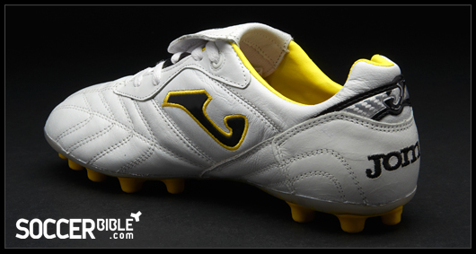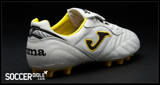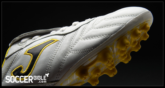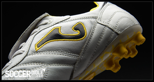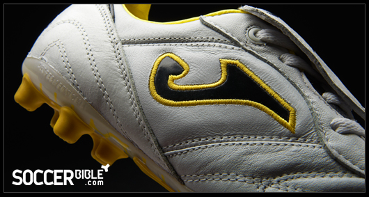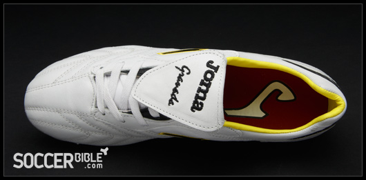 Visually the Granada is quite a standard looking boot, with a clean white leather upper, interrupted only by stitching patterns to retain boot. The leather tongue improves the striking area and is held down by hook and loop fastening. For 2011, Joma have added a splash of colour, and unsurprisingly for the Spanish company that colour is yellow, which also adorns the black versions.