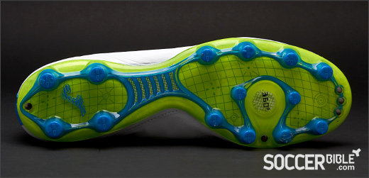 The out-sole of the Joma Total fit has been narrowed from previous Joma football boots which has allowed Joma to minimise the weight of the boot without being forced to compromise stability. The solid grooved plate that runs under the mid-sole of the boot makes this possible. The FG Joma Total Fit features 14 round moulded studs that make it suitable for harder playing surfaces.