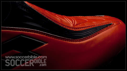 The flush fit of the Gravity Ultra is achieved by two rubberised panels stitched into the fore and heel of the boot upper. These stretch to allow your feet to fit into the boot, before retracting onto your feet to provide a real glove-like fit. And when we tried the Lotto Zhero Gravity Ultra football boots out for a play test we found the high-riding ankle and tongue sections do indeed grip the top of the foot and ankle area, but leave enough flexibility that you don't feel constrained by a boot trying too hard to "hold on" to your foot.