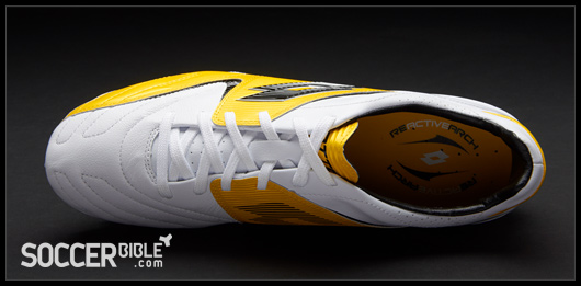 The stand-out feature of the Lotto Fuerzapura II football boots are the Cyber Yellow panels sticthed to the sides of the boots, and incorporated into the lacing system. There's definitely a Flywire feel about these panels, with the additional material cradling the foot when the laces are tightened, to hold into place and offer unrivalled support.