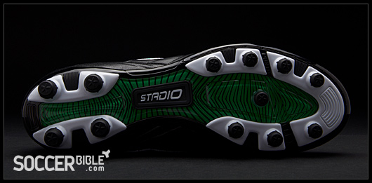The Stadio Fuoriclasse II soccer cleats outsole is stitched to the upper to increase the longevity of the boots, and Lotto have resisted the temptation to use their Twist'n'Go sole-plate, as used on the Zhero Gravity, Fuerzapura and Futura football boots. Instead, the Fuoriclasse utilises traditional conical fixed polyurethane studs to offer stability and traction on natural firm ground surfaces.