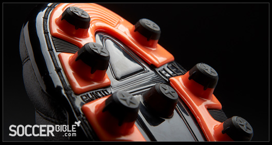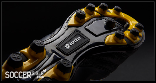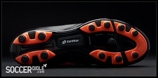 The outsole of the Lotto Stadio Potenza soccer cleats is glued to the upper and stitched around the toe area to increase the longevity of the boots, and Lotto have resisted the temptation to use their Twist'n'Go sole-plate, as used on the Zhero Gravity, Fuerzapura and Futura football boots. Instead, the Potenza utilises traditional conical fixed polyurethane studs to offer stability and traction on natural firm ground surfaces.