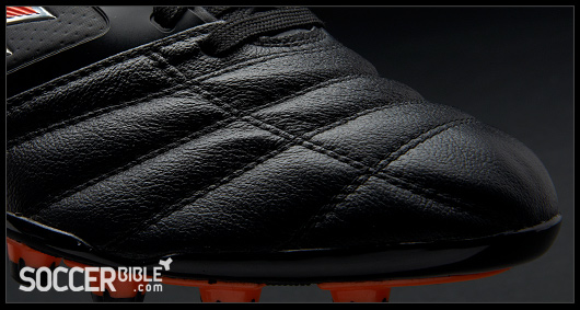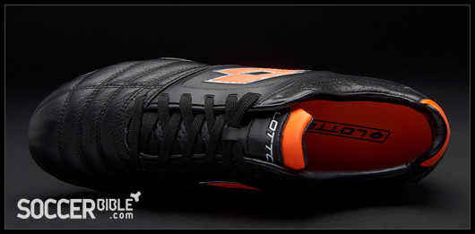 As for the construction of the Lotto Stadio Potenza football boots, the upper uses a soft kangaroo leather to retain that famous Italian comfort and flexibility. The upper is water-repellent, and as it's super soft K Leather makes for excellent touch and ball feel. Also incorporated into the upper is a synthetic material, strategically placed around the mid-foot and laces to support the foot and improve fit.