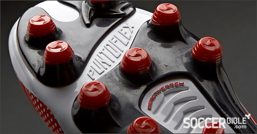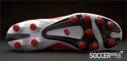 The ridges positioned on the top part of the insole provide arch massage which aids circulation and absorption of lactic acid. A ReactiveArch and insole work in synergy to maximise cushioning and stability on impact when grounded, this gives extra thrust for release. PuntoFlex technology provides the ability to flex the foot correctly which gives excellent elastic return, ensuring quick acceleration and agility at all times. Also, Gone is the Twist'nGo stud under the fore toe, and there's no return to blades as Lotto adopt a traditional conical stud sole-plate.
