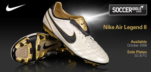 Nike Air Legend II football boots have developed a reputation for control, touch and passing and are worn by classy players Cesc Fabregas, Joe Cole and Andrea Pirlo. To match the style of play befitting the Nike Air Legends this new elegant and stylish colourway of Pearl/Dark Cinder/Gold is to be released at the beginning of October.
