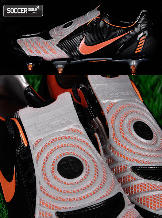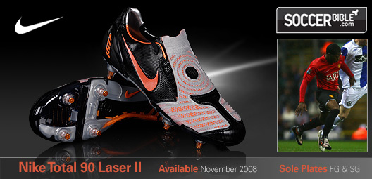 Nike Total 90 Laser II football boots are a very popular choice amoungst professional football players due to their comfort and performance benefits. The football boots choice of Rio Ferdinand, Fernando Torres, Wesley Sneijder, Wayne Rooney and Patrice Evra, Nike have responded to the high demand with a brand new colourway: black, orange blaze and metallic silver.