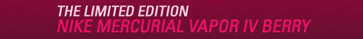 The incredible Mercurial Vapor Berry has arrived! The limited edition Berry colour option marks the 8th incarnation for the Vapor IV, a football boot that originally made an emphatic debut on the feet of Cristiano Ronaldo. Instrumental in winning titles and cups across the globe, the release of the Nike Mercurial Vapor Berry football boots enable the wearer to enjoy all the speed, acceleration and performance benefits of this elite level boot - in a distinctive colourway only rivalled by their ability...