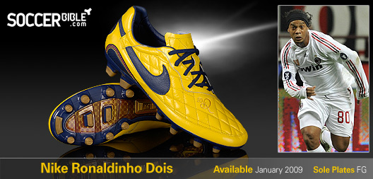 Since arriving at AC Milan Ronaldinho has rediscovered the form that saw him voted FIFA World Player of the Year on two occasions! To celebrate this return to form Nike are releasing a new exclusive colourway to the Ronaldinho Dois football boots range: the yellow/navy/gold.