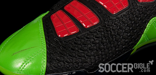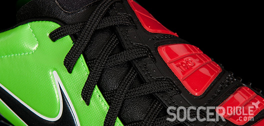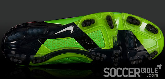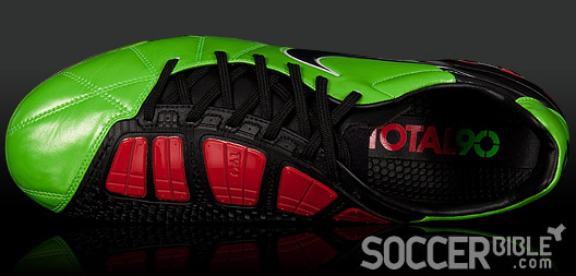 On this new Electric Green colourway, we concede they might not be to everybody's liking, but you cannot deny these boots are going to be visibile from even the top tiers at Camp Nou and Old Trafford. Combine this with the huge T90 wordmark across the heel -which reminds us of the emphatic "Nike" used on the retro Tiempo series. Add to this the Red Instep Pods that are a stand-out feature and instantly catch the eye. These flexible and flat five pod ShotShield ensures even pressure on the ball at impact for accuracy, further helped by the shape correction foam. The Instep Pods are designed to be flat to your foot, to create even pressure distribution when shooting the ball with accuracy, and their longitudinal and flexible design accommodates an enlarged kicking area.
