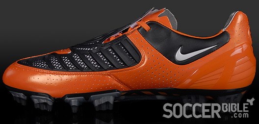 We've caught glimpses of players wearing them in training, and watched Fernando Torres score a great hat-trick wearing them, so now it's time SoccerBible had a good look at the brand new Orange Blaze/Black Nike T90 Laser II football boots!