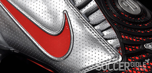 The new colourway guarantees to make an impression when it is worn on the pitch, as every element of the boot stands out. The silver is a metallic colour which not only looks strong, but very flash and ready to deliver performance. The red colour highlights the Nike badges, but also makes the innovative black ShotShield stand-out.