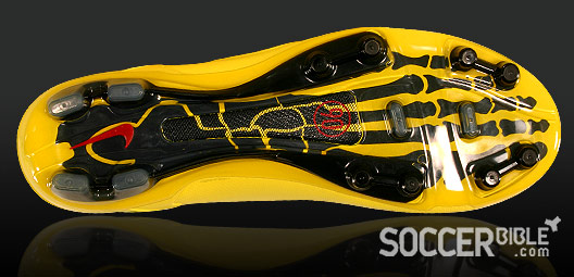 In a ironic nod to the problems the AZT series had encountered publicly before, the sole plate of the Laser featured a foot skeleton graphic which Nike claimed showed the added protection the Laser offered the player over previous versions. Again, the soft ground sole plate featured 6 removeable studs whilst the firm ground edition did not see much change from the AZTIII''s layout. During an 12 month spell 8 colourways of the Laser were released, including K-Leather and synthetic versions.