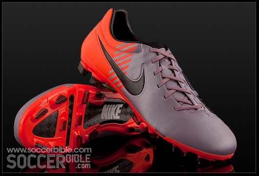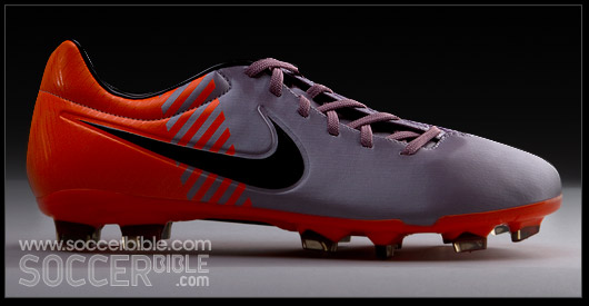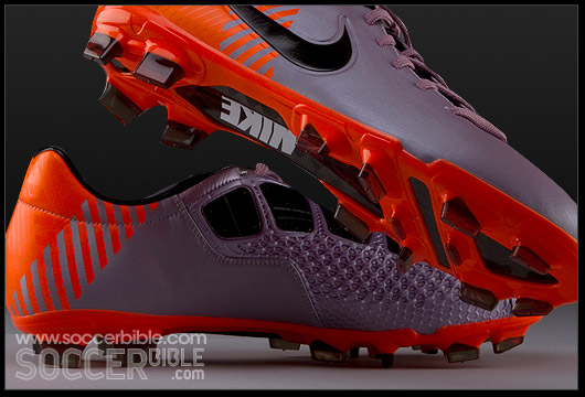 The combination of a re-engineered sole-plate and upper has resulted in the Elite Nike T90 Laser III football boots, weighing in at 16% lighter than the standard boots. The upper incorporates Vapor materials with high contrast Metallic Mach Purple and Total Orange colours, engineered together for enhanced performance and visibility.