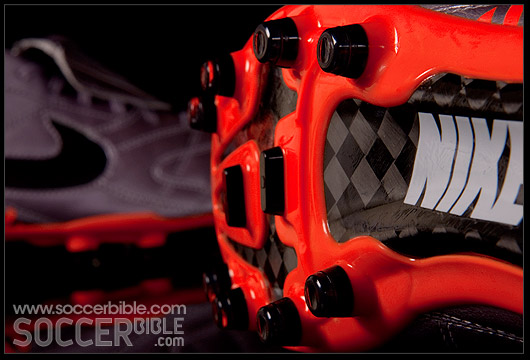 The high contrast Metallic Mach Purple and Total Orange colours are engineered together for enhanced visibility. According to Nike an average person’s vision is 99% peripheral, with under 1% considered focused. Nike designers analyzed the colour spectrum to identify a unique two colour combination designed to increase visual performance, and trigger a stimulus to rapidly tune peripheral vision. For a footballer this enables them to quickly spot their teammates and execute a game-changing pass.