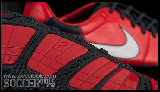 The carbon fibre sole-plate is a popular addition to Nike football boots, and has been particularly popular with the players ever since it's mainstream introduction on the Mercurial SL football boots. Another feature which distinguishes the Nike Elite T90 Laser football boots is the redesigned heel counter, integrated into the upper for reduced weight and aesthetic purposes.