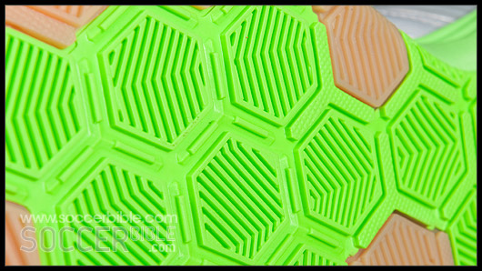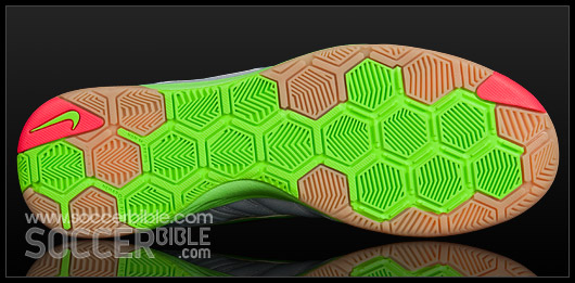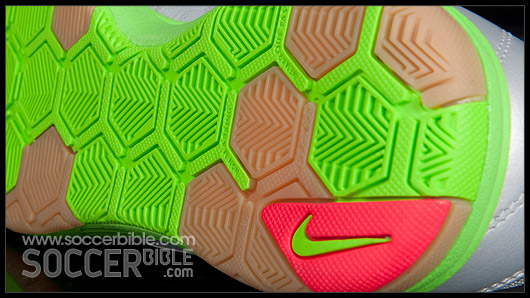 The sole is perfect for futsal and indoor courts thanks to a patterned gum-rubber honeycomb design. Not only is this intended to give better traction but the exectution means the shoe flexs more - perfect for showing off those close control skills and tricks. There are also gum rubber fins strategically placed underfoot for even more ball control.