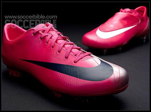 It's been almost two years since the launch of the famous Pink Nike boots, which caused quite a stir in football and subsequent media a like. Plenty of column inches and airspace time was dedicated to these football boots - eventually debuted by Arsenal's Nicklas Bendtner (Cristiano Ronaldo was rumoured to be the original debutant) so we dug out our pair of pristine soft ground Vapor IV's to give them a 2010 reflection.