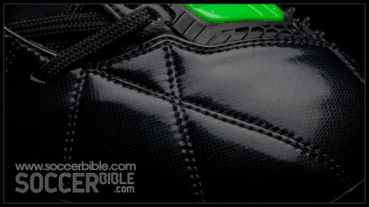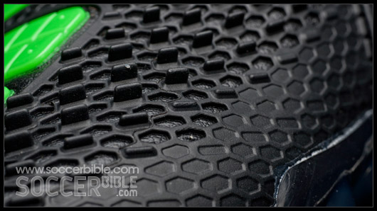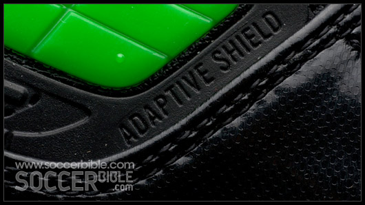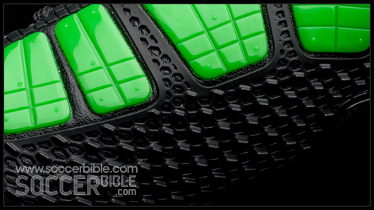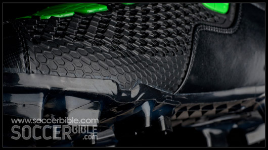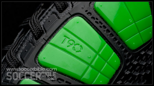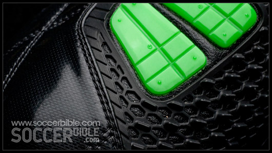 Complimenting the Instep Pods are strategically angled and raised Fins, to create friction and increased ball spin for shooting and passing. Each fin is positioned at a different angle and a different height ( between 0-3mm), to enable the player to control the swerve of the ball in multi-directional ways, depending on how the player kicks the ball, for better ball spin and kicking accuracy.
