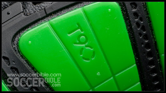 The brief and inspiration for the Elite range comes from research that shows the average energy expenditure of an elite player is over 1,000 Kilo Calories per game for a 75kg player. Reducing the weight carried by players helps reduce the energy needed over the course of 90 minutes. By delivering a super-strong and lightweight carbon fibre plate, the T90 Laser III Elites are 16% lighter to give the player an edge in the final stages of a game.