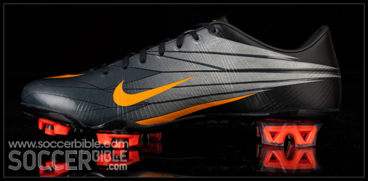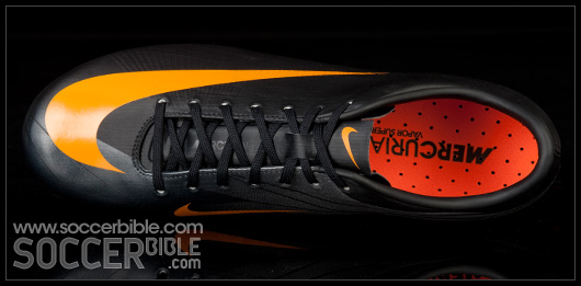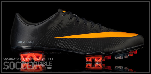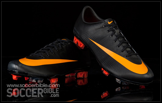 The new Black/Orange coloured Elite Nike Vapor Superfly II football boots feature a stronger and tougher performance upper to improve on-field visibility and a re-engineered out-sole to deliver lightweight performance for the world's Elite players.
