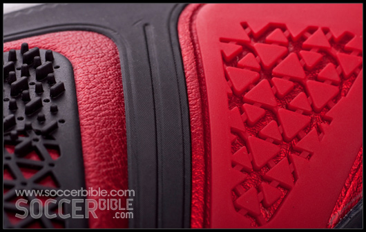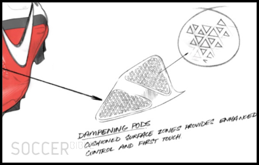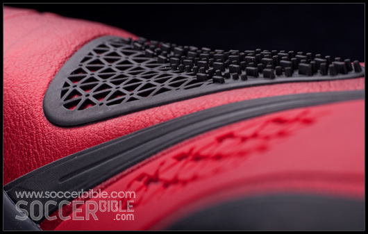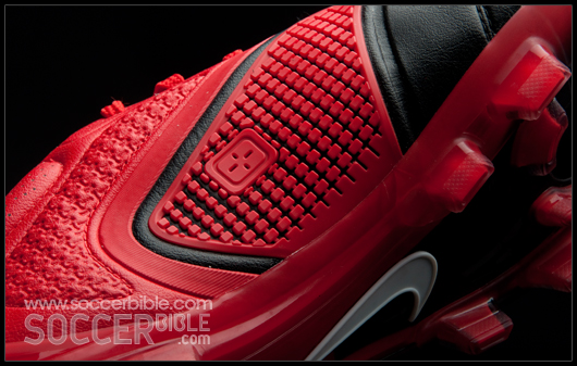 The shape and size of the dampening pads on the front upper of the boots have changed. On the new CTR II football boots they are larger and feature different shaped grooves which now match the design of the inside control pads.