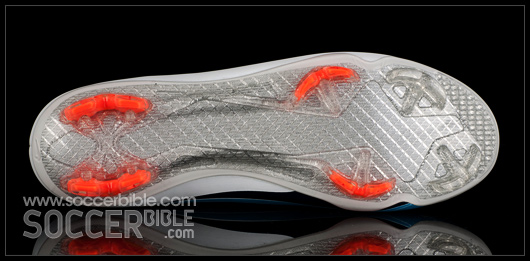 A glass fibre chassis brings you closer to the new enhanced traction elements. The new technology includes direct injected studs, incorporating 8 cored-out studs to provide a dramatic 12% weight reduction whilst enhancing strength and durability. Acceleration and sprinting is further enhanced by concentrated forefoot zonal spikes, inspired by tracks spikes to optimise grip at toe-off for an extra burst of speed, giving you an advantage over the opposition.