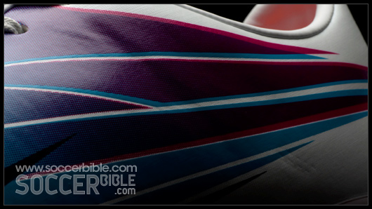The re-engineered Nike Vapor VI upper is enhanced with specifically placed 'ball-control coating' on the lateral forefoot, to aid control of the ball at top speed. The new bright colour-way with the colourful pattern instep design will certainly help your team-mates find your feet! A Vapor favourite returns in the form of the stretch-synthetic leather lace cover, to increase ball contact area for improved accuracy and touch. Whilst an internal heel counter helps lock down the foot during ball strike, plus providing a snug, secure fit.