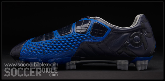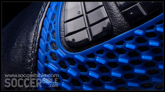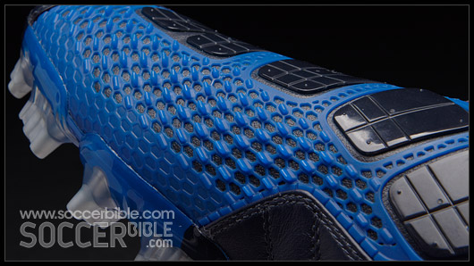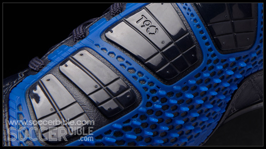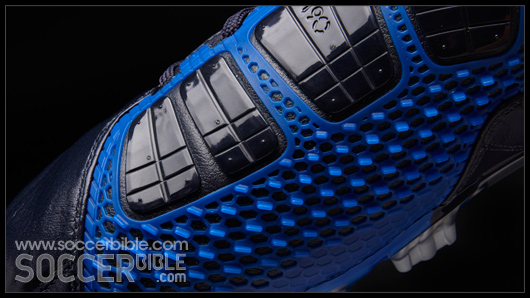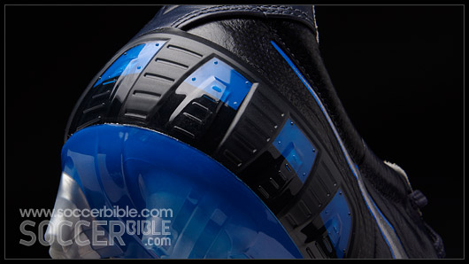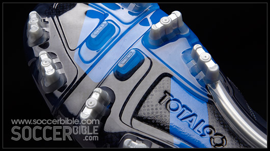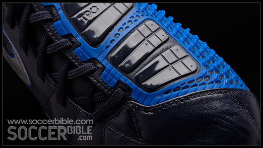 As many T90 fans will already know the ShotShield on the Laser III has been divided into two zones. The first zone maintains an even pressure on the ball at impact for accuracy, which is through the five flat longitudinal and flexible Instep Pods.