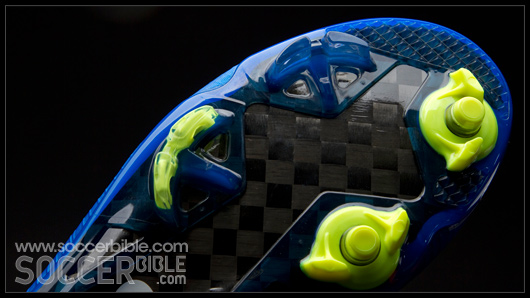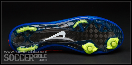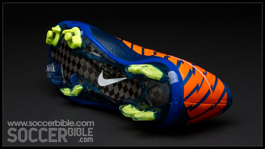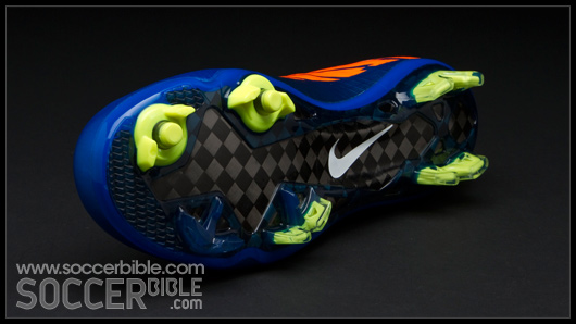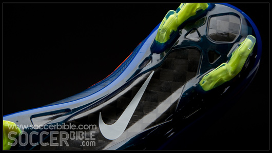 Nike's revolutionary stud design on the Superfly III is supported by a carbon fiber chassis, which has been engineered for maximum energy and strength. The exceptionally strong carbon composite tuned chassis helps to deliver increased speed and outstanding support. You may also have noticed that the SFIII now comes with a colored sole-frame.