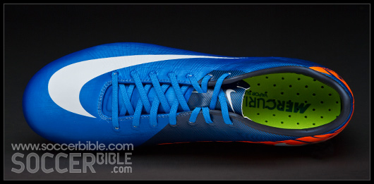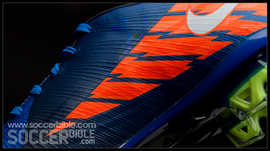 The new asymmetric, fluorescent lightning bolt design on the new Mercurial Vapor Superfly III football boots replaces the old pattern found on the Superfly II boots. The new pattern is designed to put players in the spotlight. The lightning bolts don't just look cool; they have also been designed to serve a purpose.