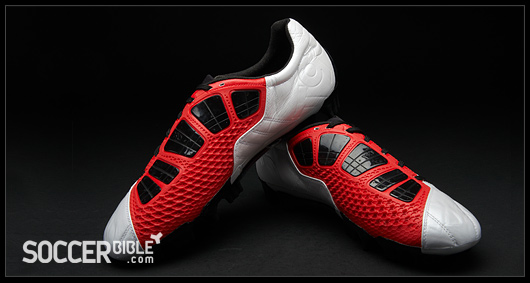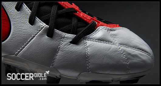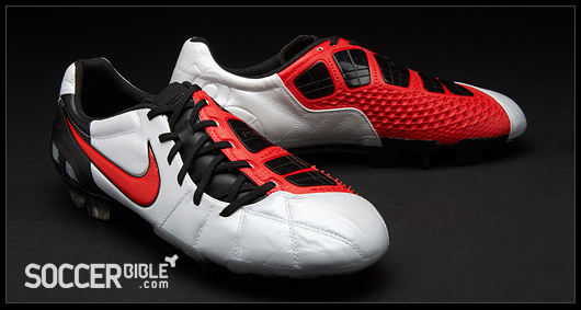 A product of innovative technology and materials, combined with a traditional natural upper, the K leather Nike T90 Laser football boots quite often avoid outlandish colourways as Nike prefer a more classy look. This is again the case, as Nike release these White/Challenge Red/Black versions, check out the full reveal exclusively on SoccerBible...