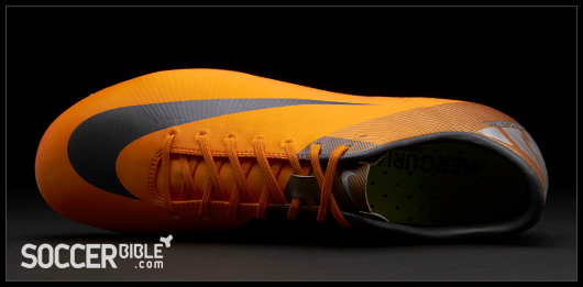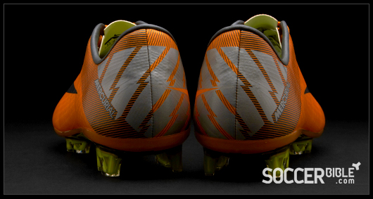 Tech-wise, the new Orange Superfly III football boots are exactly what you'd expect. Nike's headline speed boot is a master creation in modern boot construction with advanced visual designs incorporated onto the heel area. Although with the vivd orange occupying most of your eyes attention, the 'metallic silver' asymmetric lightning bolt design is barley noticeable!