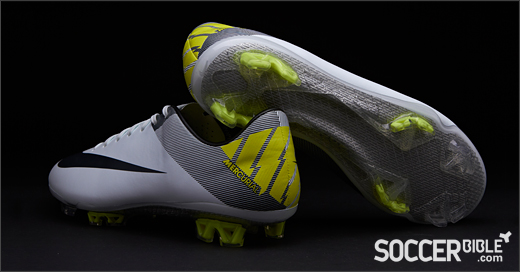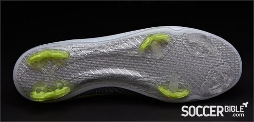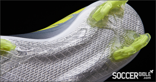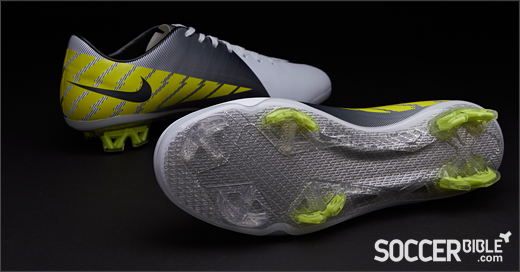 The Tepex glass-fibre chassis, that has become a Vapor favourite and looks especially cool in the SG editions with the slightly tinted outsole, brings you close to the Vapor's enhanced traction elements. The Vapor Traction II design means the forefoot FG studs are shaped to offer multi-directional traction, with central arms for acceleration/deceleration and optimal sprint traction. On the SG versions you once again have the Mercurial studs, but with the addition of the toe-off grip for enhanced acceleration.
